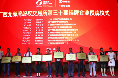 6月3日上午,由广西北部湾股权交易所主办的“营改增”政策解读与应对政策公开课暨广西北部湾产权交易所第三十期挂牌企业授牌仪式在南湖名都大酒店隆重召开。雅斯特酒店集团风控中心副总裁文兆明、财务总监李宏艳、运营高级总监钟凯、总裁助理黄毅、开发总监李新文、品牌执行官俸周耀一同出席了本次挂牌仪式。