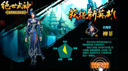 在《绝世武神》手游中,柳菲是完成忆江湖任务“缘起一线”后解锁的英雄,林枫误入柳菲修炼之地一线天, 柳菲误认为林枫图谋不轨, 恼羞成怒的她抄起弓箭, 意图射杀林枫。过了几日,林枫料想柳菲火气已消,决定回到一线天中,消除与柳菲之间的误会,获取战斗胜利即可免费招募热辣美女柳菲。