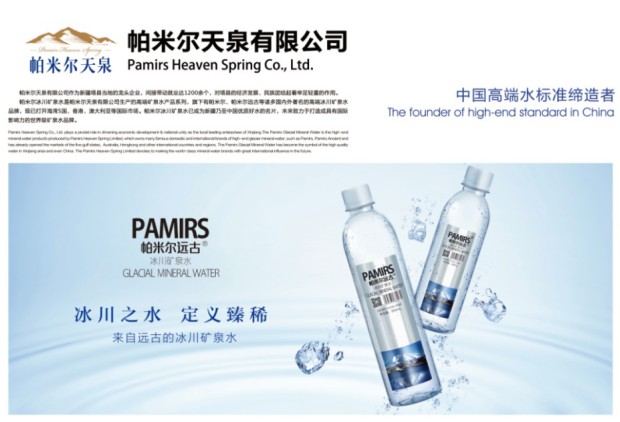 ? ? 作为新疆当地的龙头企业,帕米尔天泉自2003年成立伊始就致力于将当地的资源打造成世界级高端品牌,十几年的历程,现已成为新疆的名片,对当地的经济发展、民族团结起着举足轻重的作用,此次凭借优质资源产品——帕米尔远古冰川矿泉水,代表新疆参与外交部“蓝厅论坛”,更是将新疆的文化、产品呈现在了世人的面前。