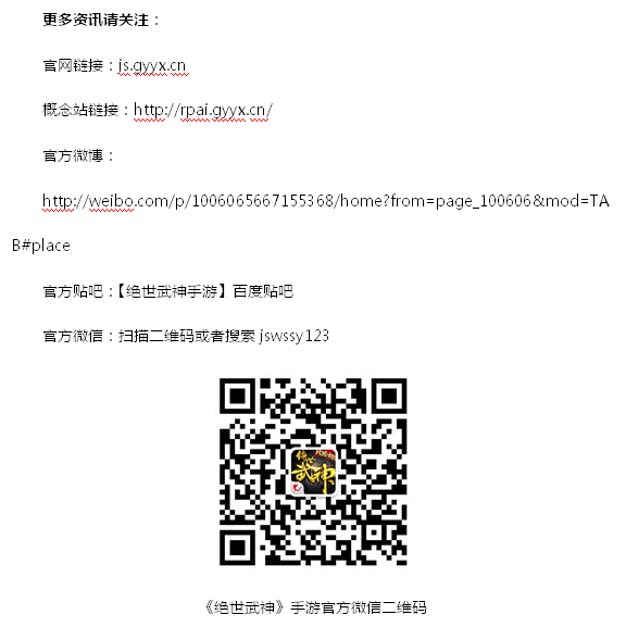 一部《绝世武神》记述了一个不凡男人的传奇一生,一首《绝世武神》唱出了多少人心中的武侠梦,而这一切都将在《绝世武神》手游中得以实现,在这里实力为尊,在这里可以随心而动,以战正名。登录官方网站或关注官方微信及时获取更多游戏最新动态及福利。