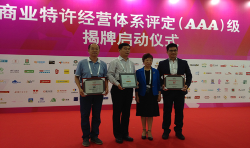 会议期间还举行了“商业特许经营体系评定(AAA)级”揭牌仪式。协会郭戈平会长为驿家365连锁酒店集团体系评定(AAA)级授牌。