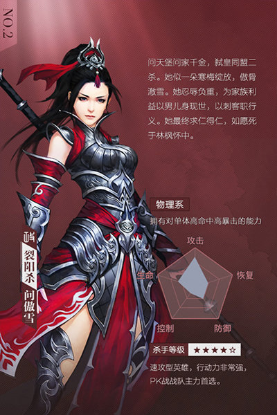 英雄特性:物理系,拥有对单体高命中高暴击的能力。