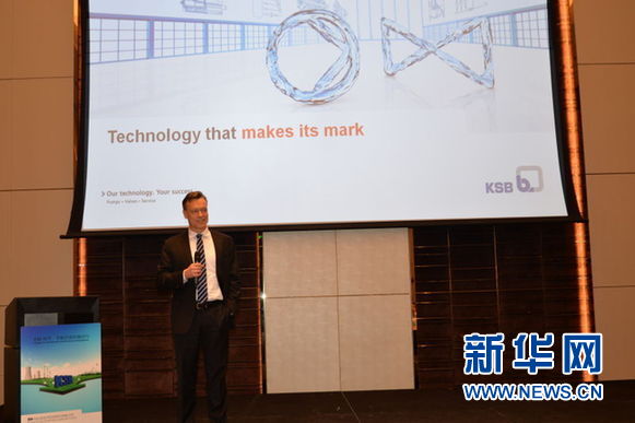 图为,KSB德国董事Mr Stegmueller做开幕式致辞