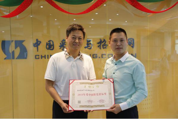 海航基础采购管理部总经理邱金坤(图右)领取“2015年度中国阳光招标奖”