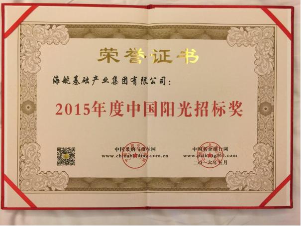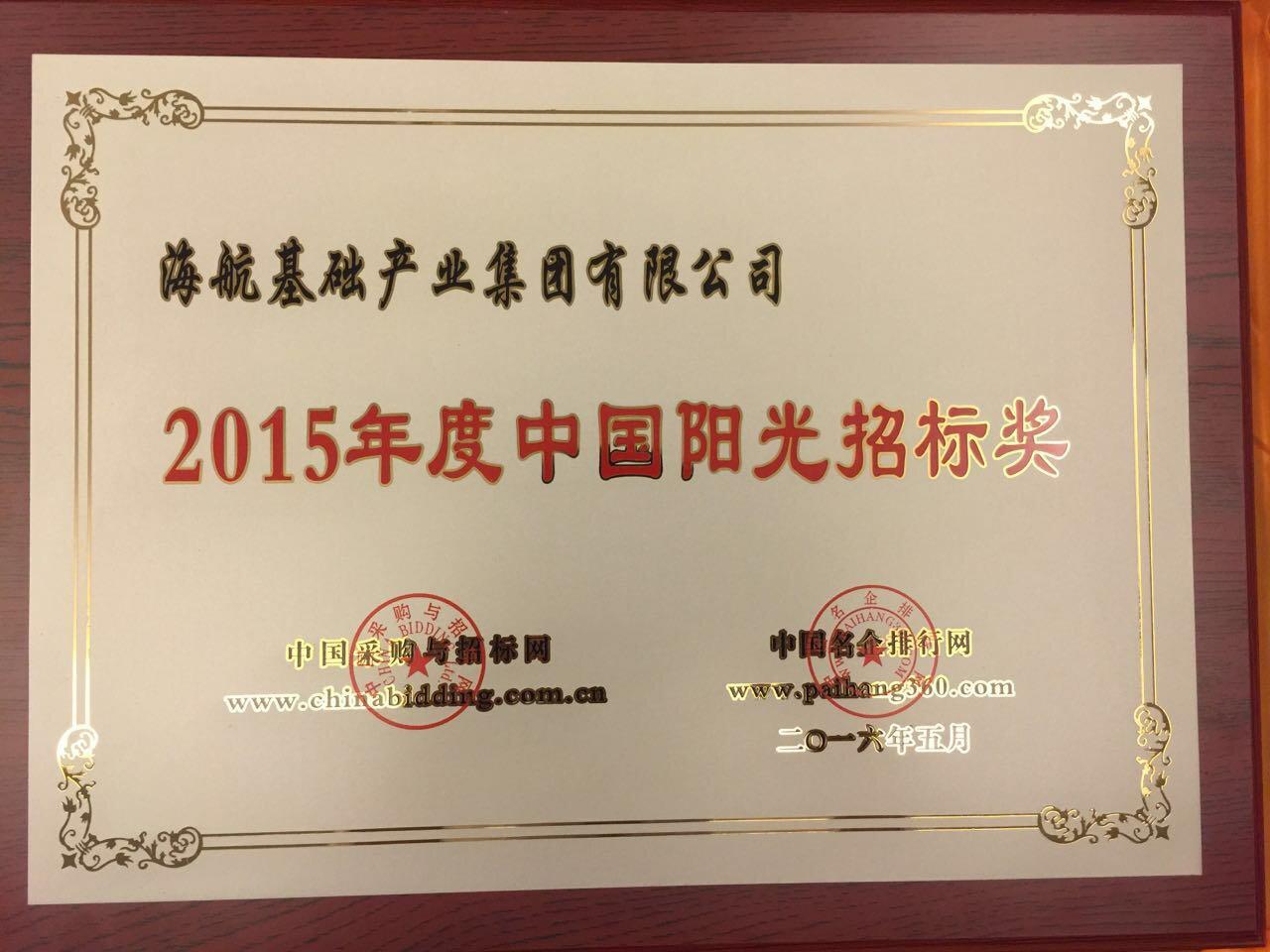 2016年5月19日,由中国采购与招标网、中国名企排行网联合组织开展的2016年第十届全国招投标领域年度聚焦活动中,海航基础产业集团有限公司(以下简称“海航基础”)喜获“2015 年度中国阳光招标奖”,这是海航基础首次在招标领域获此殊荣,也标志着“阳光采购”得到了业界好评。