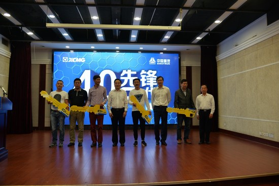 最后,新产品现场交接仪式将整场会议推向最高潮。徐工起重机械事业部营销公司华南区总经理许明先亲自将四把G一代产品金钥匙交到客户手中,武汉也成为G一代产品率先发力的重要市场。