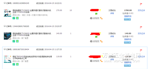 辉明商贸部分网络成交订单