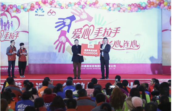 2015年12月18日,由四川德善投资集团股份有限公司主办的“爱心手拉手?成长心连心”大型公益活动在绵阳市新桥镇新桥中学隆重举行。来自全国的义工以及新桥中学的老师、家长和学生共400多人全程参与了本次活动。