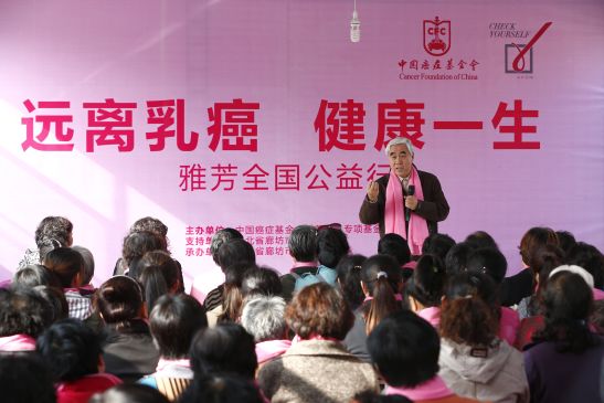 依托雅芳女性基金会,“远离乳癌,健康一生”主题项目于2001年引入中国。雅芳携手乳腺癌防治的知名专家,将乳腺癌防治知识及医疗服务传递到医疗水平相对薄弱的贫困地区,通过深入浅出的知识普及讲座及专家义诊等公益活动,让更多的女性关注自身健康,做到科学预防。十余年来,已为中国74个城市的300多万女性提供了免费的乳腺健康知识普及、咨询和乳癌筛查服务。