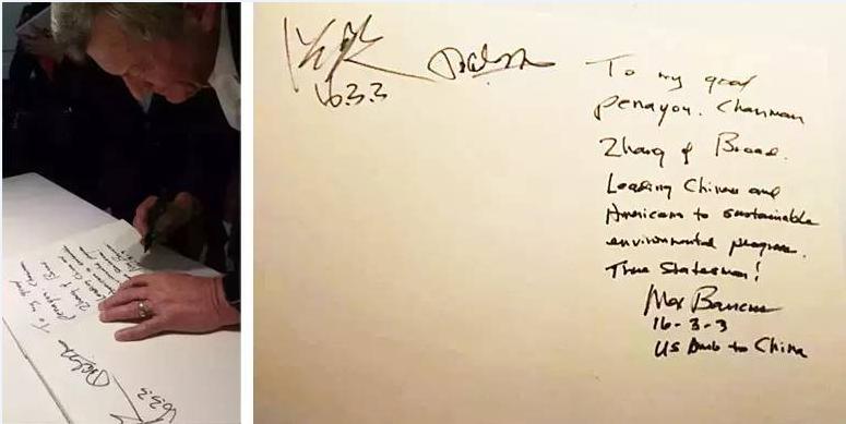 ? ? “致我的好友远大董事长张跃:您引领着中美可持续的环境议程!”