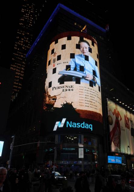??? 2015年12月7日13日上海普馨咖啡有限公司作为“中国民族品牌”推送中国品牌代表之一在中国民族品牌大型宣传推介活动的助推下登陆美国纽约时代广场纳斯达克大屏幕展示品牌形象。