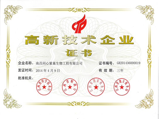 南昌同心紫巢获得江西省“高新技术企业”称号