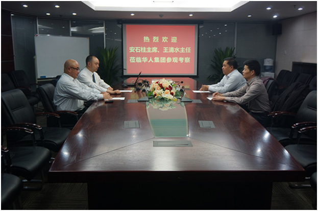 会见结束后,邝远平、金铖陪同安石柱一行考察了华人集团总部,并合影留念,握手言欢。