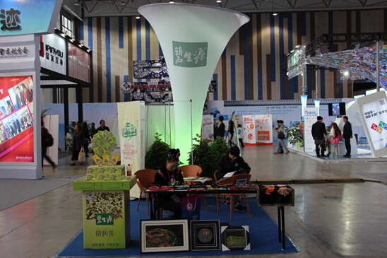 本次广告节媒介·广告企业形象展示交易会中,除传统形式的展览展示外,增加民族风情体验区域。民族风情体验区包含三大功能,碧生源花草茶产品赠饮,商务洽谈区域,以及核心的民族手工艺人表演。多彩贵州人杰地灵,苗族的刺绣、蜡染等传统手工艺作为黔文化的代表令远道而来的参观者向往。在展会中,碧生源与组委会共同设置五大风情区,特邀来自雷山、丹寨的手工艺者进行刺绣、蜡染的表演。配合风情区的整体设计布置,碧生源这个充满民族文化关怀的品牌,与古老的苗族文化连接在一起,一同为参观者奉献了一场文化盛宴。