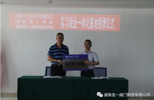 2020年7月2日上午,湖南佳一电力科技开发有限公司、湖南理工学院、湖南理工学院南湖学院实习就业一体化基地授牌仪式在湖南佳一电力科技开发有限公司举行。