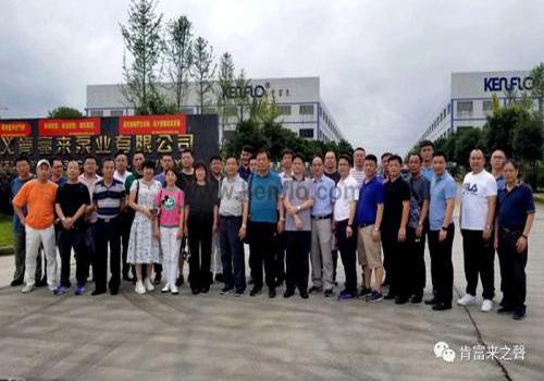 与会人员在遵义肯富来泵业有限公司大门口合影留念