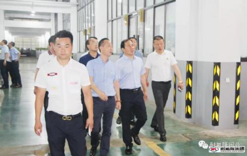 2020年7月16日下午,闷热的雨后,河南省郏县县委宋书记一行领导,来耐氟隆阀业视察指导,参观考察。方贤乐总经理就公司的发展史,公司生产现状做了详细介绍。