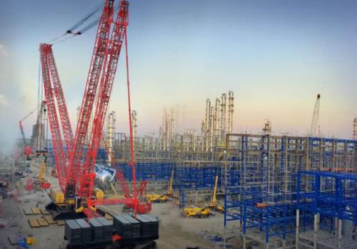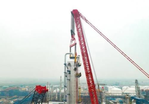 7月15日,山东寿光,鲁清石化项目现场,由三一重工研发制造、全球最大4000吨履带起重机SCC40000A,顺利完成了4号“1500吨级”丙烯塔吊装。