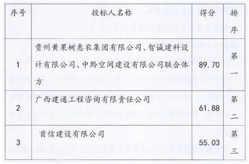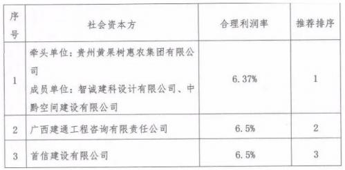 从贵州省政府采购网获悉,贵州省安顺市西秀区水务一体化建设项目(一期)发布预中标结果公示,贵州黄果树惠农集团有限公司、智诚建科设计有限公司、中黔空间建设有限公司联合体预中标,合理利润率为6.37%。