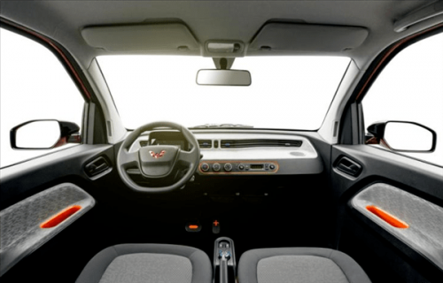 宏光MINI EV定位纯电动四门微型车,车长宽高为2917/1493/1621mm,轴距为1940mm。虽然车辆只有双门,但是门板面积较一般的乘用车更大,因此内部空间可以乘坐4个人。