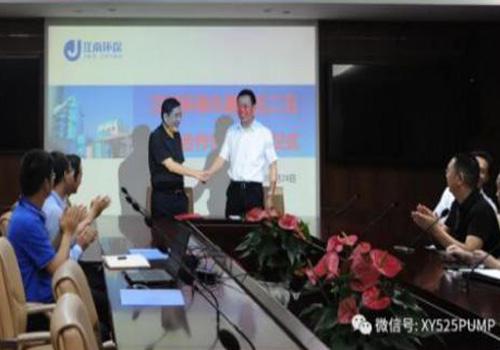 7月24日,五二五泵业公司与江苏新世纪江南环保股份有限公司战略合作协议签字仪式在江苏南京江南环保大厦隆重举行,公司总经理王乃华和江南环保集团董事长徐俊生在协议上签字并合影留念。