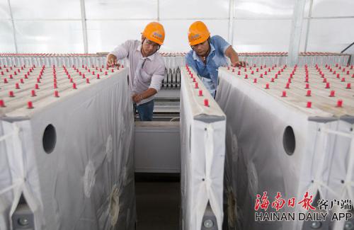 7月30日,在三亚市污泥处理处置项目扩建工程荔枝沟项目一期厂房,工程人员正在检查调试压滤设备。