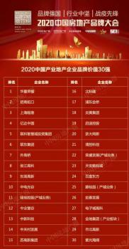 同时,2020中国房地产品牌价值榜系列榜单也得以揭晓。