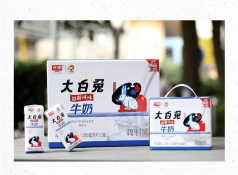 7月22日,一款“光明大白兔奶糖风味牛奶”悄然出现在各大渠道网点。原来,这是由大白兔X光明乳业联名推出的一款牛奶。