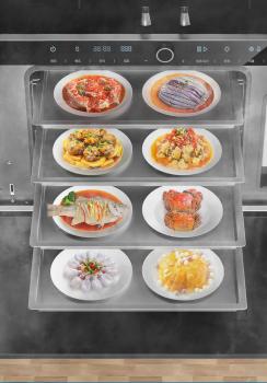 集成灶反其道而行之,既要省又要大。消毒柜款集成灶常用53-57L容量,兼顾了消毒和碗柜两种功能,满足一家四口的日常需求;蒸箱款集成灶常用64L容量,4层蒸盘,可以一次蒸8个菜,只需30分钟,蒸一桌菜绰绰有余;烤箱款集成灶常用70L容量,对于做烘焙的人来说十分友好,除此之外,火星人烤箱款集成灶特别加入砂锅炖、披萨、热风烧烤等6大模式,炸、烧、煮、炖、烩、焗、烤样样精通。
