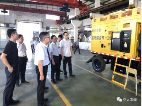 在新产品装配现场,张坤看到为山东寿光市应急管理局研制生产的防汛排涝车,高兴地说,泰兴的企业为山东防汛做贡献,亚太功不可没。他希望企业要进一步强化新品开发,用更优质的防汛应急设备为各地防洪排涝作出更大贡献。