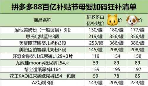 8月6日,新电商平台拼多多正式上线“百亿补贴节”活动,包括美赞臣、A2奶粉、爱他美、惠氏、好奇、帮宝适、花王、尤妮佳、史努比、迪士尼等在内的众多母婴品牌,均以全渠道历史最低价的形式参与。