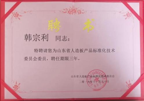 2020年7月10日,山东省人造板产品标准化技术委员会换届暨第一次全体委员会议上,特聘韩师傅集成家居有限公司韩宗利先生为山东省人造板产品标准化技术委员会委员。