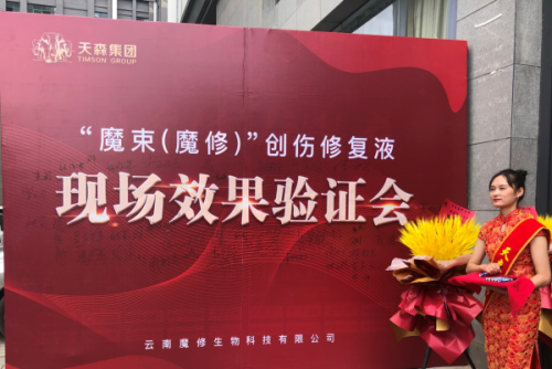 8月8日下午,由天森集团、云南魔修生物科技公司研发的魔束(魔修)创伤修复液在昆明发布并举行现场效果验证会。在省、市卫健委和云南多家医院、科研机构、医学教学机构相关负责人、媒体等嘉宾的见证下,天森集团药品研究院院长李华教授进行现场试验演示,用小白鼠和自身亲自做试验,详细介绍魔束(魔修)创伤修复液的使用方法和修复过程,让现场所有人真切感受到产品快速修复创伤创口的神奇效果。