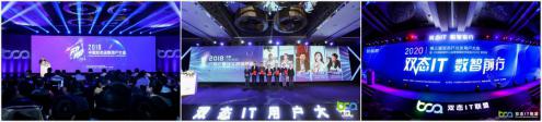 ▲从左到右依次为2018年、2019年、2020年北京用户大会