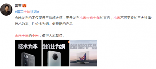 由于时间的关系,在十周年主题演讲上,雷军仅仅给大家分享了部分小米10年来的重大事件。还有更多关于产品上的想法无法给大家一一分享,所以今晚雷军准备以直播的方式继续和大家交流。