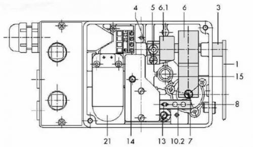 1.反馈杆(1)2.反馈弹簧(6)3.反馈风箱(7)4.气动功率放大器(7下部)5.电/气转换器(21)