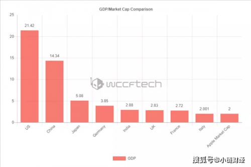 如果将2万亿美元与国家的 GDP 比较起来,或许会让你明白这个数字有多恐怖。如果将苹果假设为一个“ 国家 ”来看,将其市值看作是国家的 GDP,那么它可以排在全球第九位,仅次于意大利整个国家的GDP。