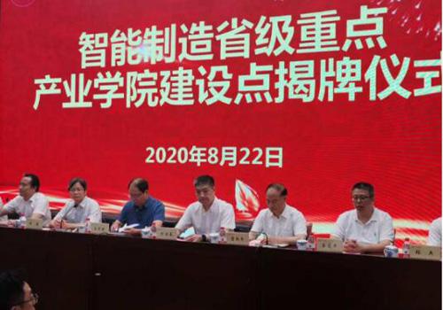 在揭牌仪式上,江苏省教育厅副厅长王成斌和副市长陈正春一起为省智能制造重点产业学院揭牌,并分别讲话,祝贺常州工学院智能制造产业学院正式揭牌。常州工学院汤正华主持仪式,省教育厅高教处邵进处长宣读省级重点产业学院建设点遴选结果通知,常州工学院党委书记曹雨平致辞,并宣布常州工学院智能制造产业学院建设指导委员会主任委员、副主任委员名单,常州工学院张兵副校长分别为聘任专家们颁发聘书。