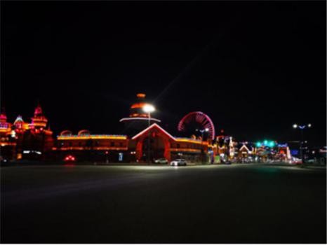 目瑙纵歌广场是景颇族特色文化广场。其湖面栈道贯穿内湖、外湖,“丹凤朝阳”栈道直面昆仑山脉,直抵网红打卡点“湖心观景亭”。景区还打造了大型历史实景剧《英雄腾起·成吉思汗》,演出分为盟誓结拜、保卫家园、那达慕大会、部落纷争等六个篇章,50多名演员以精湛的骑术和高超的技艺展现了赛马、摔跤、射箭、歌舞表演等情节。