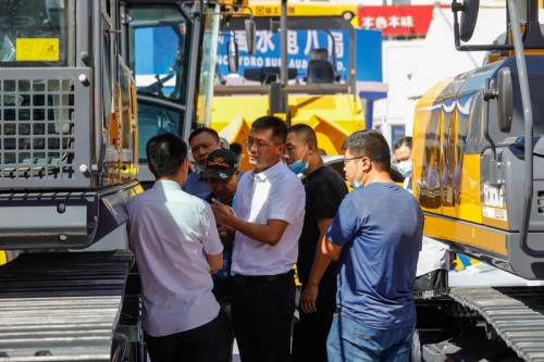 烈日当头,挡不住客户试驾的热情。数百名客户围在徐工挖机的展台前咨询、排队试驾,人气十分火爆。展会还未结束,徐工挖机已斩获多笔意向订单。