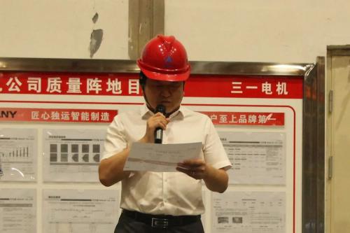 随后电机公司研究院院长杨强先生、工艺所所长古蕊先生、质保部部长于国卿先生先后代表本部门发表应战宣言,为打赢这场战役各部门应各司其职,通力协作,并带领各自部门成员高喊会战口号。