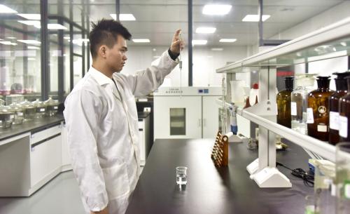 CNAS认可的联邦检测中心工作人员正在进行化学分析实验。