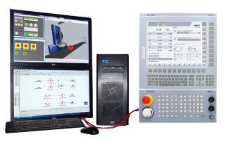虚拟控制器版本包括一个软件开发包,用于创建机器的软件模型。该模型是一个独立的PLC程序,使用预定义的组件来模拟各个机器元素,如传感器、主轴、气动缸等。它被加载到Flexium+控制器的集成PLC中。控制器中的Flexium NCK执行NC程序,并模拟机床各轴的位置值变化。为了帮助用户实现流程的可视化,NUM 的软件包包括 CODESYS GmbH 生产的 CODESYS Depictor 软件工具,该工具用于根据模拟生成的IEC 61131-3代码生成3D可视化效果。