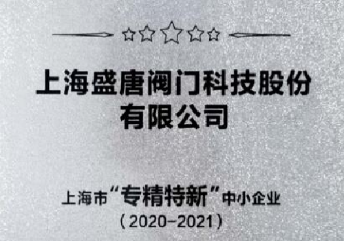 9月17日(周四)下午浦东国际人才港举办2019年浦东新区“专精特新”企业授牌仪式。上海盛唐阀门科技股份有限公司荣获(2020-2021)上海市“专精特新”中小企业。