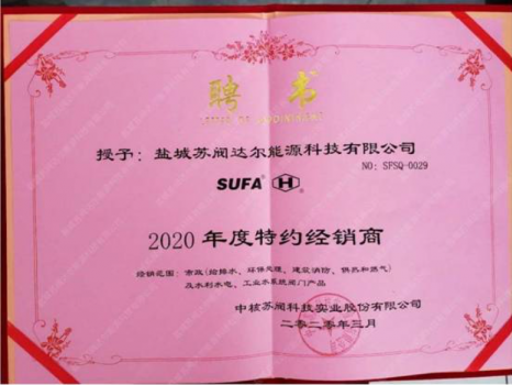 2020年中核苏阀代理商总结交流会上,盐城苏阀达尔凭借雄厚的企业实力,高效优质的服务,以及在泵阀业务的优秀经营上,在此次交流会上,中核苏阀授予盐城苏阀达尔以"中核苏阀2020年度特约经销商"资格,代理编号:NO:SFSQ-0029,同时还斩获"最佳开单奖"!(小主们,中核苏阀,认准盐城苏阀达尔哦~)