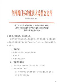 关于召开全国阀门标准化技术委员会第五届四次及阀门驱动装置分技术委员会第二届四次大会暨标准审查会议的通知