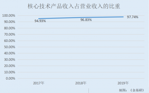 2017-2019年,万通液压的核心技术产品收入分别为2.33亿元、3.57亿元、3.07亿元,占营业收入比例分别为94.93%、96.83%、97.74%。