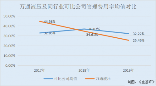 而在管理费用率上,2018-2019年,万通液压管理费用率低于同行业可比公司平均水平。