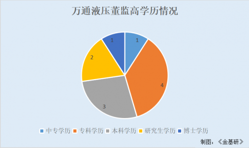 苏金杰,万通液压监事会主席,大专学历;梅秀香,万通液压监事,大专学历;陈光,万通液压监事,研究生学历;
