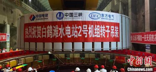 白鹤滩水电站2号机组转子吊装成功。东方电机 供图